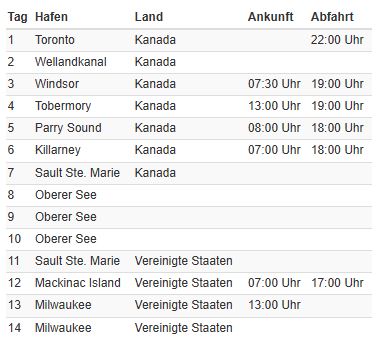 Termin | Preis Außenkabine Smart Kat. ab/an Hafen | |